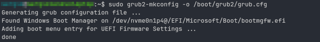 Ahora ejecuta el siguiente comando para hacer los cambios en el GRUB2